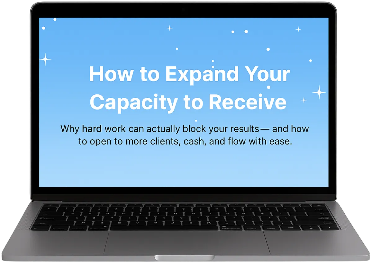 Deep down you know it’s not about doing more. You’re ready for clients to come through ease, flow, and alignment — not exhaustion, proving, or pressure.