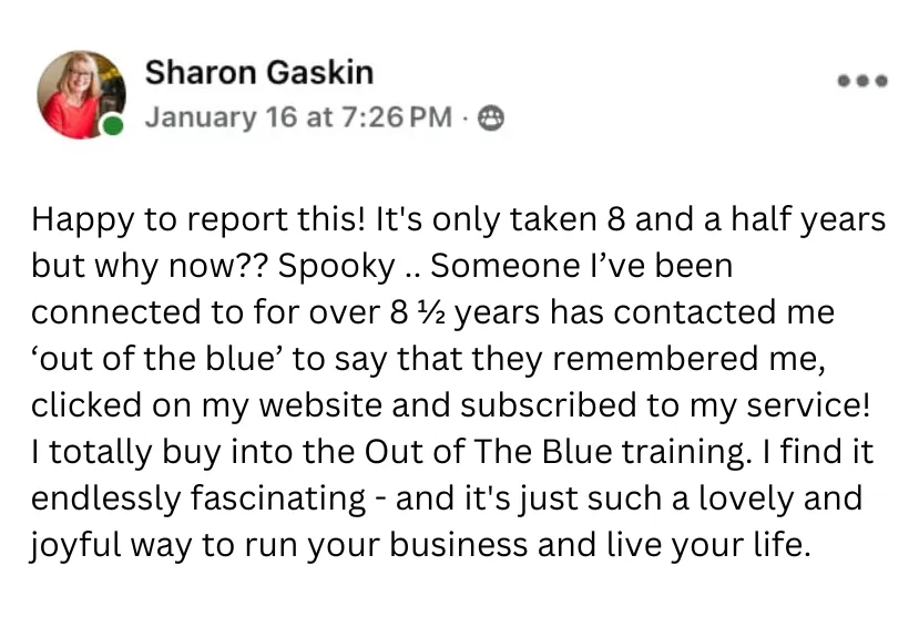 Get Clients Out of the Blue helps you open to opportunities that are already around you, instead of chasing strangers online.