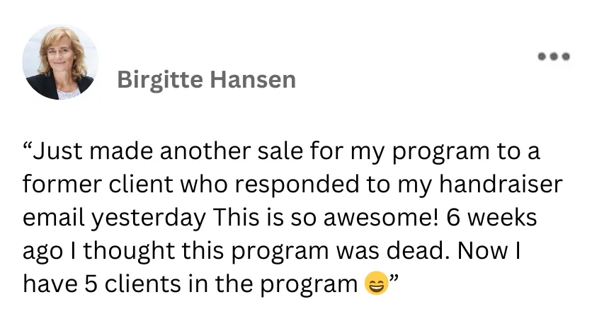 And remember, you’re not just getting your next paying client — you’re learning a formula you can use anytime you want a new one.