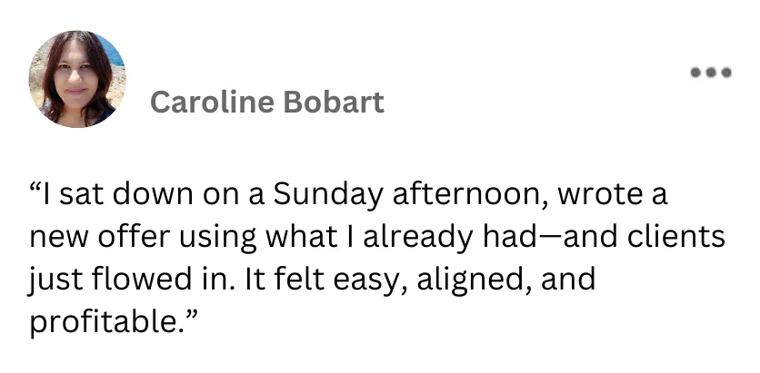 So I distilled what I’d observed and practiced for years into something anyone could use — a 53-minute training designed to help you get your next paying client fast, by aligning with what’s already working in your favor.