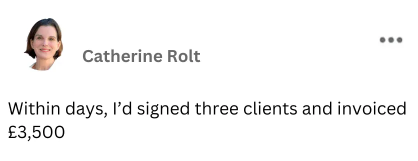Designed to get your next paying client - fast. This isn’t theory. It’s a repeatable formula you can use whenever you want another client.